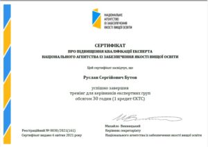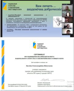 Впродовж 15-16 березня 2021 року завідувачка кафедри фізичної реабілітації та медико-біологічних основ фізичного виховання, кандидат біологічних наук, доцент Евеліна Олександрівна Жигульова, а кандидат наук з фізичного виховання та спорту Бутов Руслан Сергійович 5-6 квітня 2021 року пройшли онлайн тренінг для керівників експертних груп від Національного агентства із забезпечення якості вищої освіти. Тренінг надав можливість підвищити кваліфікацію експерта – керівника експертної групи, а саме: