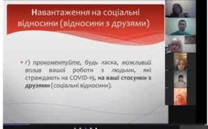 Вибрані фактори психосоціального життя у медичних працівниць, що працюють з пацієнтами, які страждають на COVID-19 у квітні 2021 року були предметом обговорення на дискусійних сесіях під час он-лайн зустрічей, модераторами яких виступили декан факультету фізичної культури Іван Стасюк та завідувач кафедри фізичної реабілітації та медико-біологічних основ фізичного виховання Евеліна Жигульова. Групові дискусії організовано в межах реалізації міжнародного фокусного та порівняльного дослідження, проведеного в Польщі, Чехії, Словаччині та Україні.