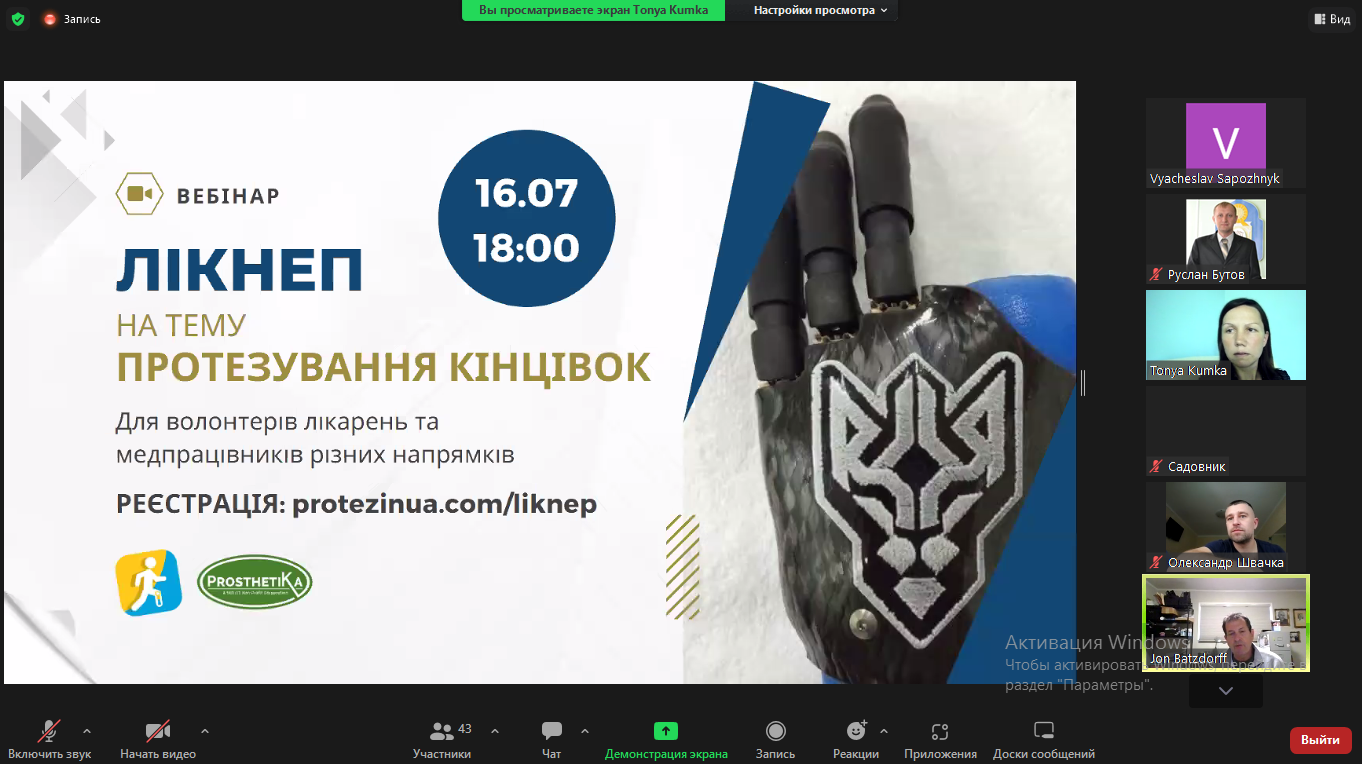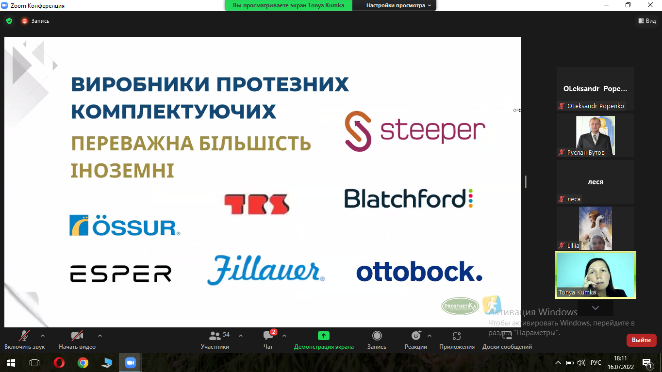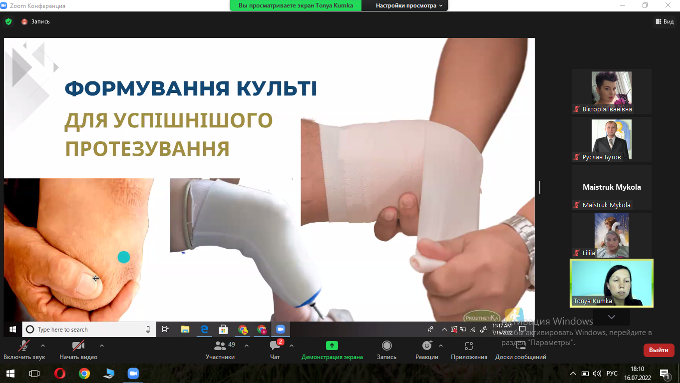 16 липня 2022 року старший викладач кафедри фізичної реабілітації та медико-біологічних основ фізичного виховання Бутов Руслан  брав участь у  вебінар “Протезування кінцівок”