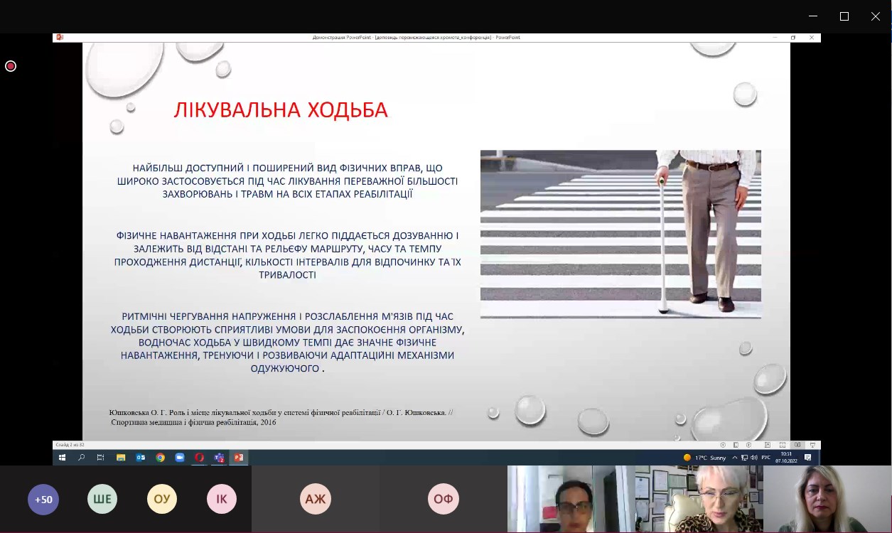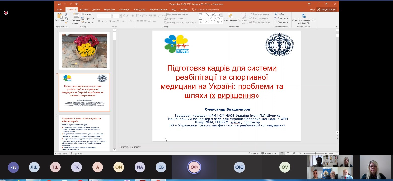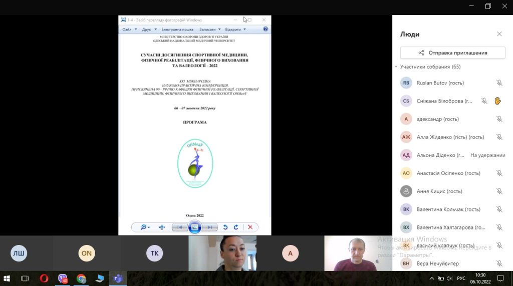 6-7 жовтня 2022 року (м. Одеса) науково-педагогічні працівники кафедри фізичної реабілітації та медико-біологічних основ фізичного виховання, здобувачі вищої освіти та випускники факультету фізичної культури взяли участь у XХІ Науково-практичній конференції з міжнародною участю «Сучасні досягнення спортивної медицини, фізичної реабілітації, фізичного виховання та валеології – 2022», яка присвячена 90- річчю заснування кафедри фізичної реабілітації, спортивної медицини, фізичного виховання і валеології Одеського національного медичного університету.