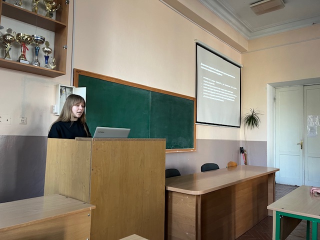 Більш детально про презентаційні матеріали доповіла Олександра Цісар, секретар Комісії з питань академічної доброчесності. Олександра ознайомила присутніх із нормативними документами («Кодексом академічної доброчесності Кам’янець-Подільського національного університету імені Івана Огієнка (нова редакція)», «Положенням про дотримання академічної доброчесності педагогічними, науково-педагогічними, науковими працівниками та здобувачами вищої освіти в Кам’янець-Подільському національному університеті імені Івана Огієнка (нова редакція)»); основними принципами академічної доброчесності, якими повинні керуватись учасники освітнього процесу; озвучила перелік проблем, з якими можна звернутись до Комісії, та процедуру самого звернення; детально висвітлив правила, які передбачені «Кодексом академічної доброчесності Кам’янець-Подільського національного університету імені Івана Огієнка (нова редакція)»; розтлумачила, що таке «академічний плагіат», «самоплагіат», «фальсифікація», «фабрикація», «необ’єктивне оцінювання», «хабар», «обман» та інше.