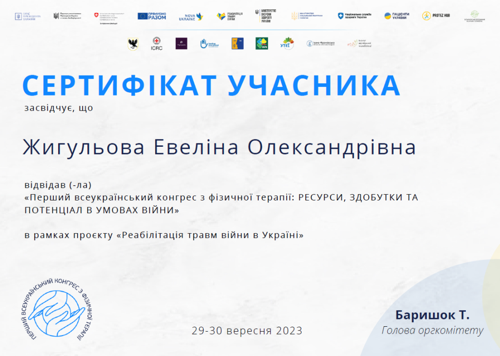 • «Актуальні питання фізичної терапії та перспективи розвитку реабілітації в сучасних умовах»